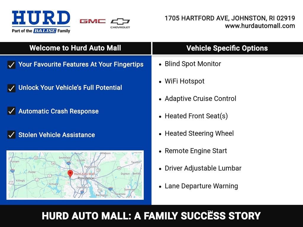 At Hurd Auto Mall, proudly part of the Balise Family, we have been honored to serve the Rhode Island community for over 85 years, offering exceptional customer service in a family-oriented environment. As part of the trusted Balise group, we continue to deliver the highest standards of excellence and satisfaction. Price includes: $2500 - Chevrolet Consumer Cash Program. Exp. 03/31/2026 $750 - Chevrolet Bonus Cash. Exp. 03/31/2026